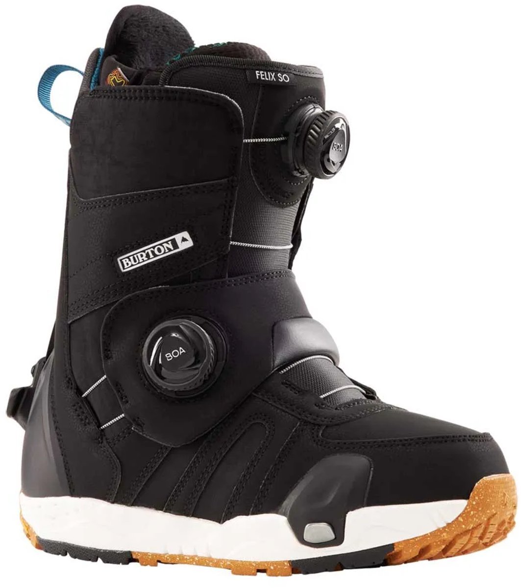 Vrouwen Felix Step On® Snowboardlaarzen.Meer comfort.Meer aanpasbaarheid.Meer plezier.Het enige waar je je zorgen over hoeft te maken als je op de Burton Felix Step On® Snowboardlaarzen voor dames rijdt, is welke run je als volgende moet nemen.Naast de revolutionaire eenvoud van onze Step On binding, zijn ze uitgerust met de nieuwste technologie om je voeten tevreden te houden, plus een micro-verstelbare pasvorm waarmee je een uniforme pasvorm van boven tot onder kunt instellen.En het is allemaal verpakt in een responsieve flex die een ontspannen houding en veelzijdigheid op alle terreinen bevordert.Ja, graag.Kenmerken:Stap er gewoon in.Het Step On®-systeem creëert een schone en eenvoudige interface tussen laars en binding waarmee je er gewoon in kunt stappen.Geen gespen.Geen riemen.Geen gedoe.Micro-verstelbare, uniforme pasvorm.Het Sequence BOA® Fit System heeft twee verschillende veterpaden voor een uniforme pasvorm van boven tot onder met een simpele draai aan een knop.Warme, droge voeten.Lichtgewicht, warmtevormbare binnenzolen bieden een op maat gemaakte pasvorm met de technologie om warmte te reflecteren en zweet af te voeren om je voeten de hele dag en het hele seizoen warm en droog te houden.