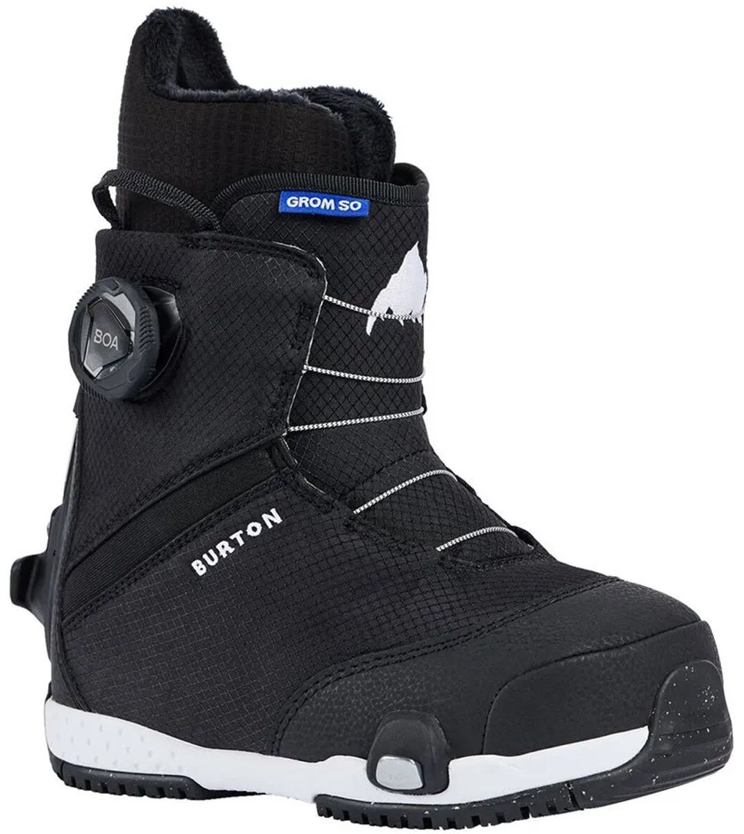 Kids’ Grom Step On® Snowboard Boots.Geef ze de kracht van onafhankelijkheid in handen.De kids’ Burton Grom Step On® Snowboard Boots verdubbelen de vrijheid met het intuïtieve gemak van een step-on bindingsysteem en de vereenvoudigde vetersluiting van het BOA® Fit System.Stap er gewoon in, stel de pasvorm in en ga rijden.Het kan niet veel kindvriendelijker dan dat.Kenmerken:Stap er gewoon in.Het Step On® systeem creëert een schone en eenvoudige interface tussen schoen en binding, zodat je er gewoon in kunt stappen.Geen gespen.Geen riemen.Geen gedoe.Een oversize BOA® draaiknop maakt het gemakkelijk om de schoen aan te passen voor kleine handen.