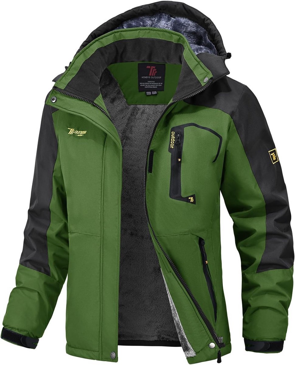 Snowboards kopen » Wintersportkleding » Dames Fleece Jas Waterdicht & Warm Winterjas Outdoor met Afneembare Capuchon