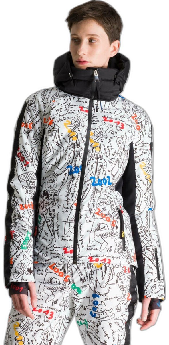 Maak indruk op de pistes. Sinds 20 jaar creëren Rossignol en de beroemde Franse ontwerper Jean-Charles de Castelbajac skikleding met een originele en speelse geest. Om de 20e verjaardag van de samenwerking te vieren, is het damesjack Eco Logic voorzien van een unieke print die de meest iconische ontwerpen van Jean-Charles de Castelbajac viert. Het hoogwaardige Sympatex-membraan is waterdicht, ademend en gecombineerd met lichtgewicht, hoogwaardige synthetische isolatie voor ongeëvenaarde bescherming tegen de elementen. De hoge kraag en geïsoleerde capuchon zorgen voor extra warmte.Klassieke pasvorm