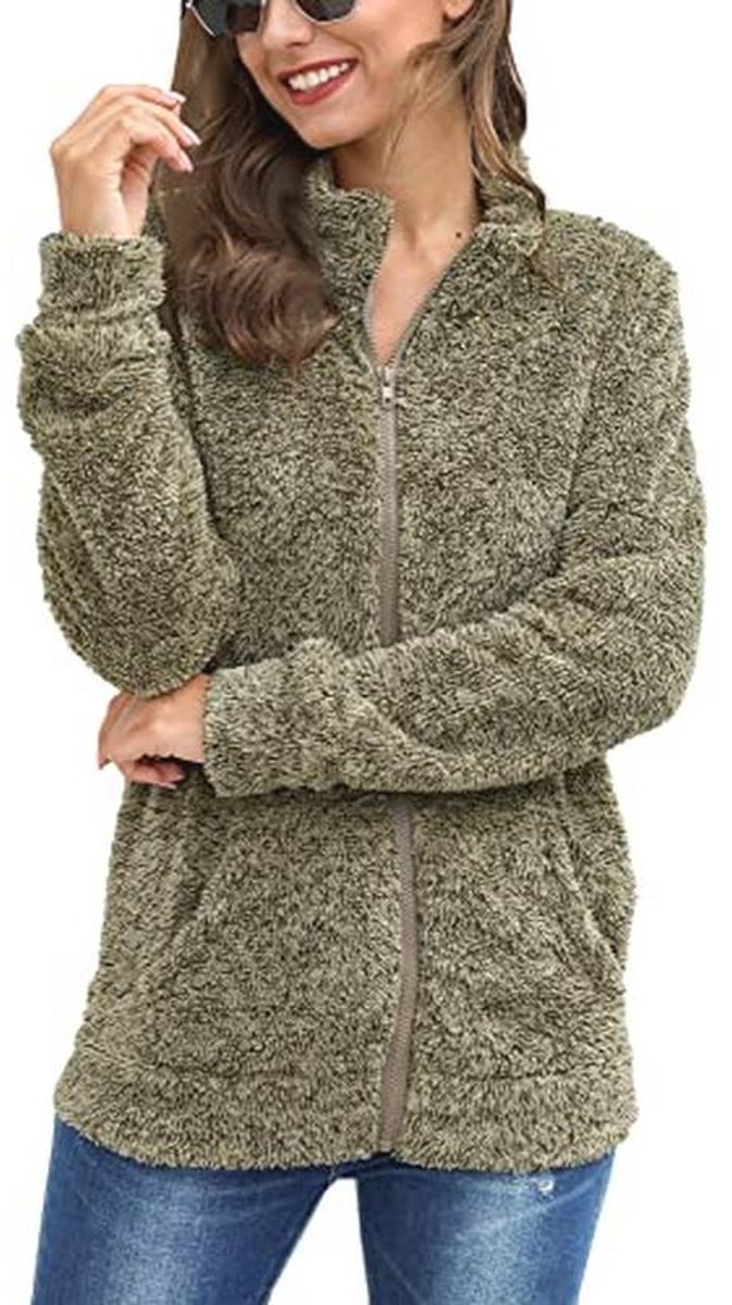 Dames teddyfleece jas met volledige rits en opstaande kraag – Warm en Comfortabel – Maten S-XXL