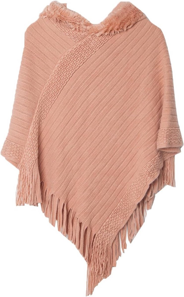 Snowboards kopen » Wintersportkleding » Dames Winter Poncho met Capuchon – Elegante Gebreide Cape met Franjes en Pompons