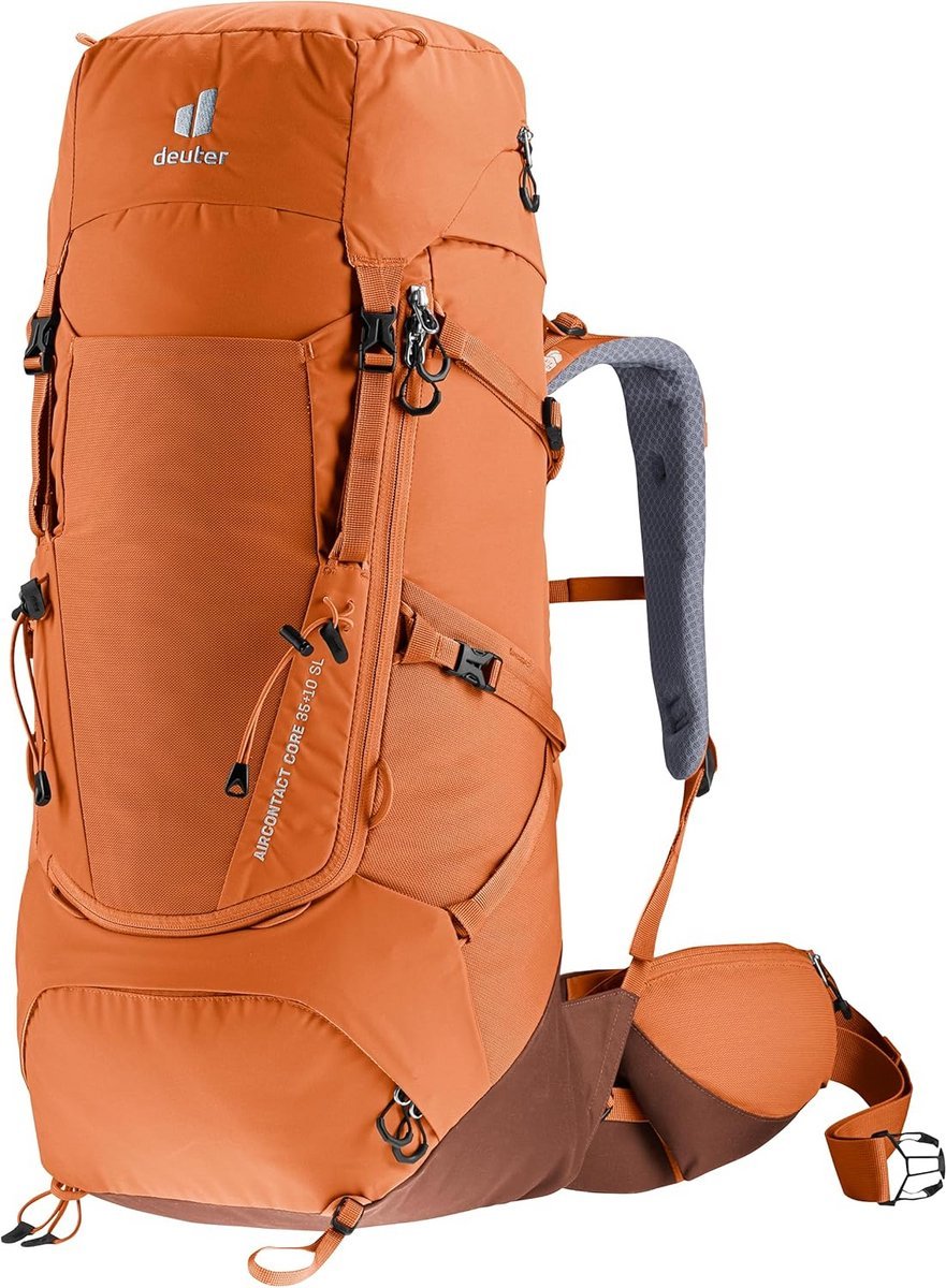 De Deuter Aircontact Core 45+10 SL is een ruime trekkingrugzak voor globetrotters die comfort en stabiliteit zoeken bij lange wandeltochten. Het vrouw-specifieke SL-fit ontwerp zorgt voor een optimale pasvorm die aansluit bij de vrouwelijke anatomie. Dankzij het Aircontact rugsysteem met ventilatiekanaal en Air Spacer-mesh wordt het zweet afgevoerd en zorgt het voor een comfortabele draagervaring. Het Y-frame en het trapeziumvormige lendenkussen zorgen voor een goede lastverdeling over het bekken, terwijl de verstelbare heupriemen en borstriem de rugzak stevig op zijn plaats houden. De actieve schouderbanden bieden meer bewegingsvrijheid, vooral bij klimmen. De rugzak is uitbreidbaar van 45 naar 55 liter met een verstelbare deksel, en beschikt over een apart bodemvak, elastische zijzakken en een voorvak voor makkelijke opbergruimte. Verstelbare compressiebanden maken het mogelijk om extra uitrusting te bevestigen zoals wandelstokken of een sleepzak. Compatibel met de Deuter Streamer 2.0 en 3.0 drinksystemen. Gemaakt van meer dan 50% gerecycleerde bluesign-materialen en voorzien van een PFAS-vrije DWR-coating voor duurzame water- en vuilafstoting.