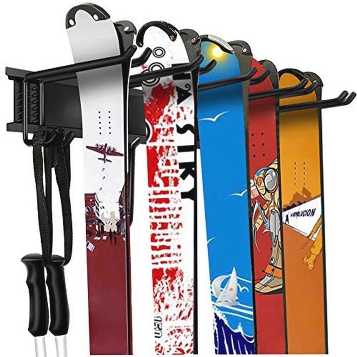 Garage Opslag Organisatie Systeem voor Ski’s en Snowboards – Wandrek voor Thuis, Schuur en Garage – Houdt tot 300 lbs