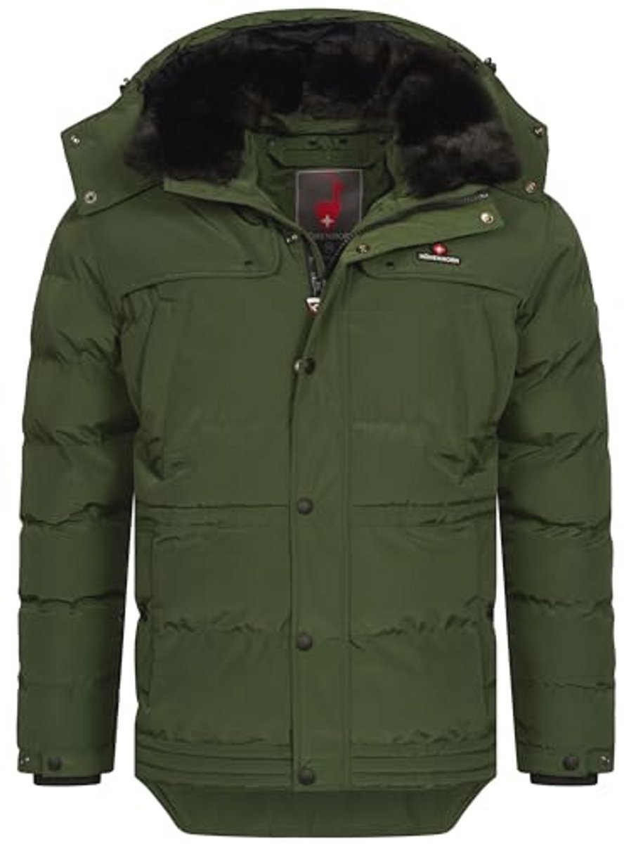 Deze gewatteerde winterjas voor heren is perfect voor koude dagen. Hij biedt uitstekende warmte en comfort met zijn stijlvolle ontwerp en hoogwaardige materialen. De afneembare kraag van imitatiebont voegt een extra dimensie toe aan de look en maakt het mogelijk om de jas aan te passen aan jouw stijl. Ideaal voor dagelijks gebruik, buitenactiviteiten en winterse avonturen.