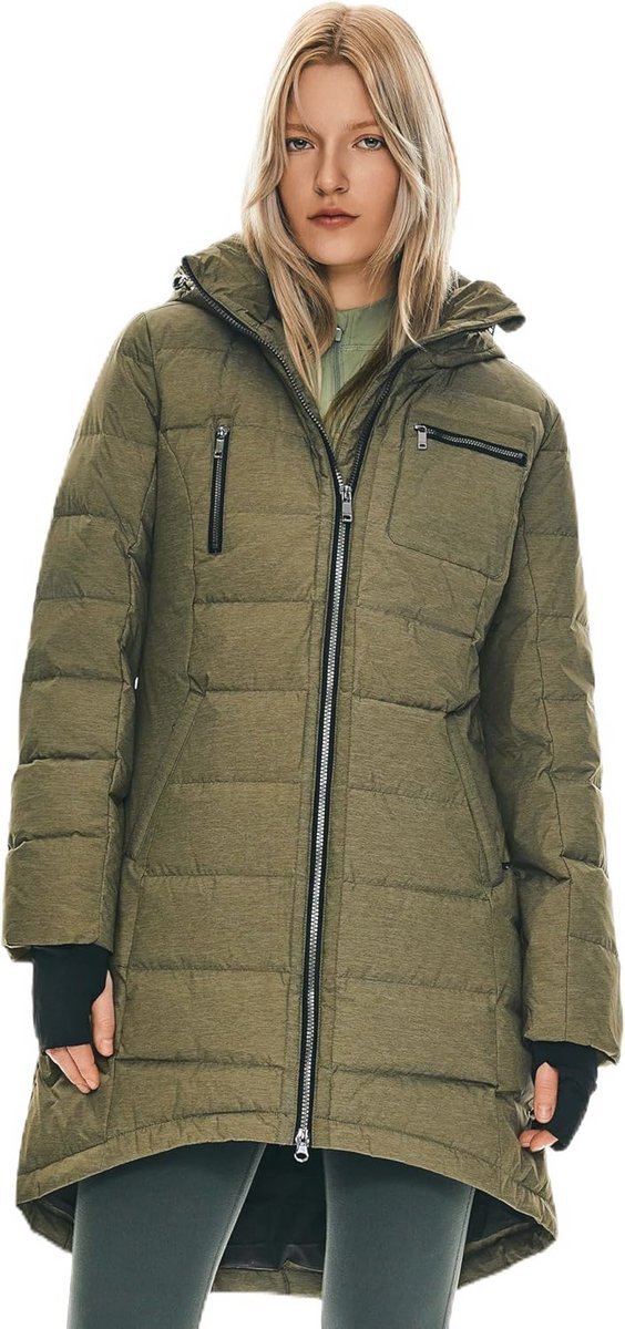 Snowboards kopen » Wintersportkleding » Halflange Uitloperjas met Capuchon voor Dames – Luxe Winter Donsjack