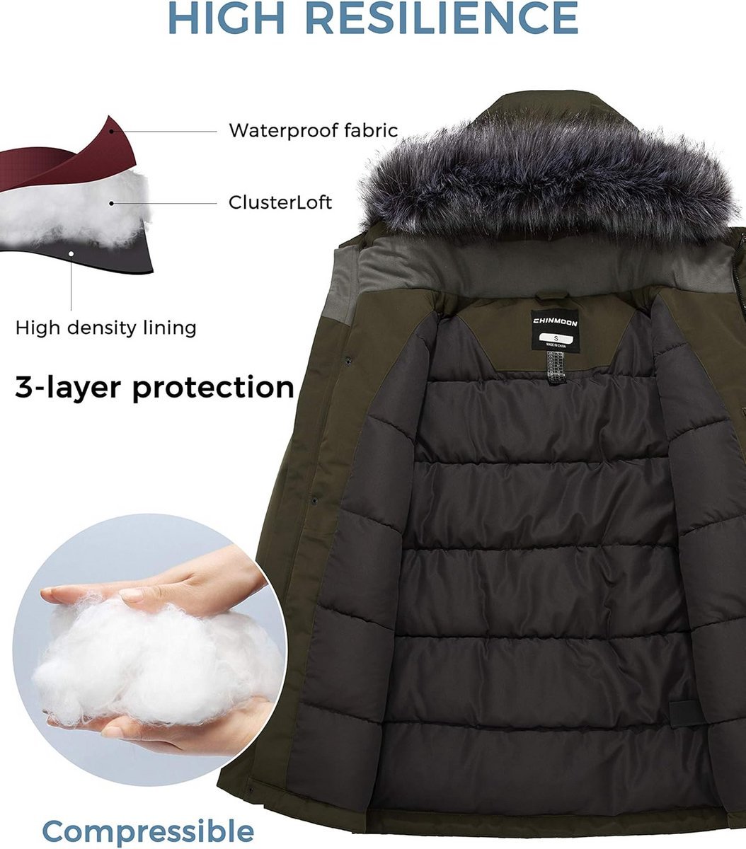 Snowboards kopen » Wintersportkleding » Heren Dikke Gewatteerde Winterjas met Warme Capuchon en Winddichte Eigenschappen