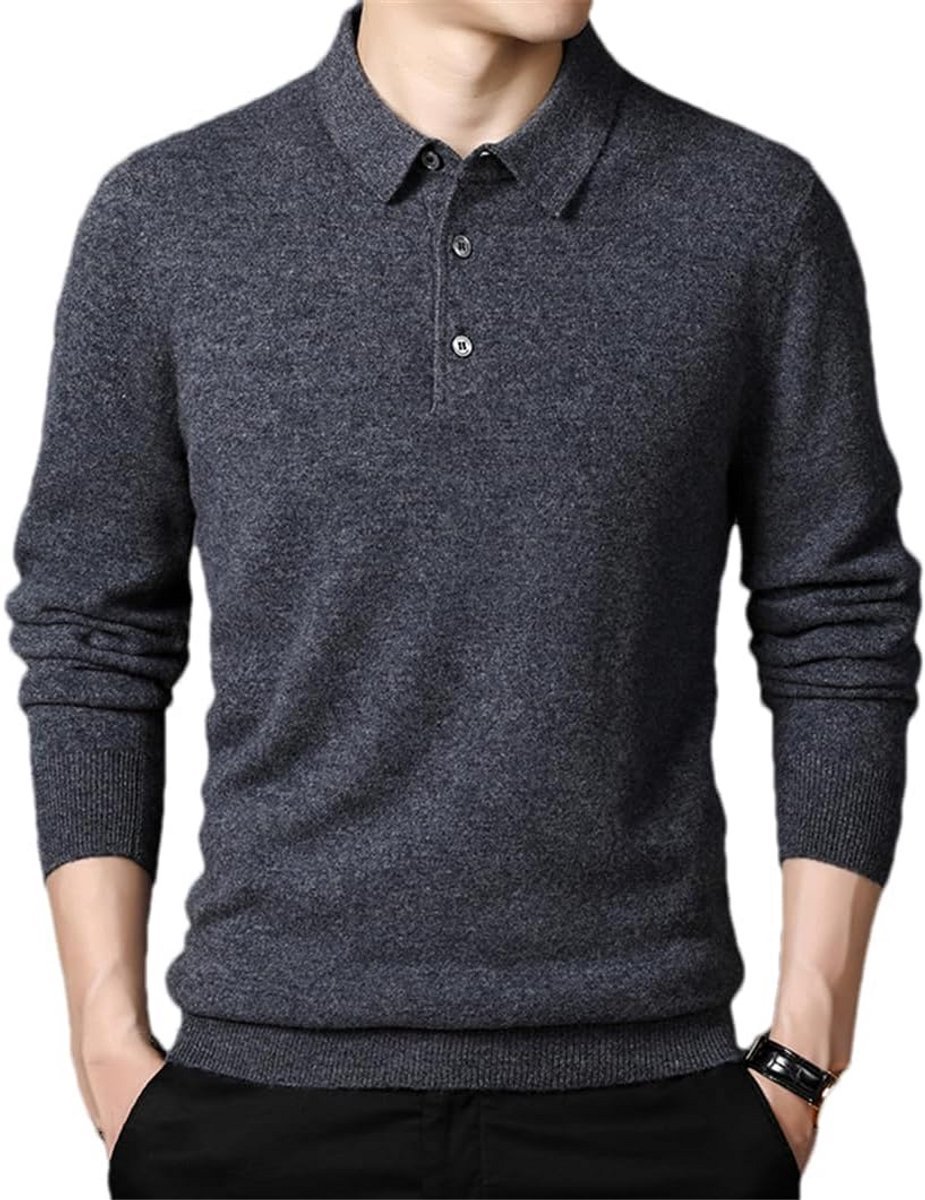 Heren Kasjmier Wollen Trui met Omslagkraag en Knopen