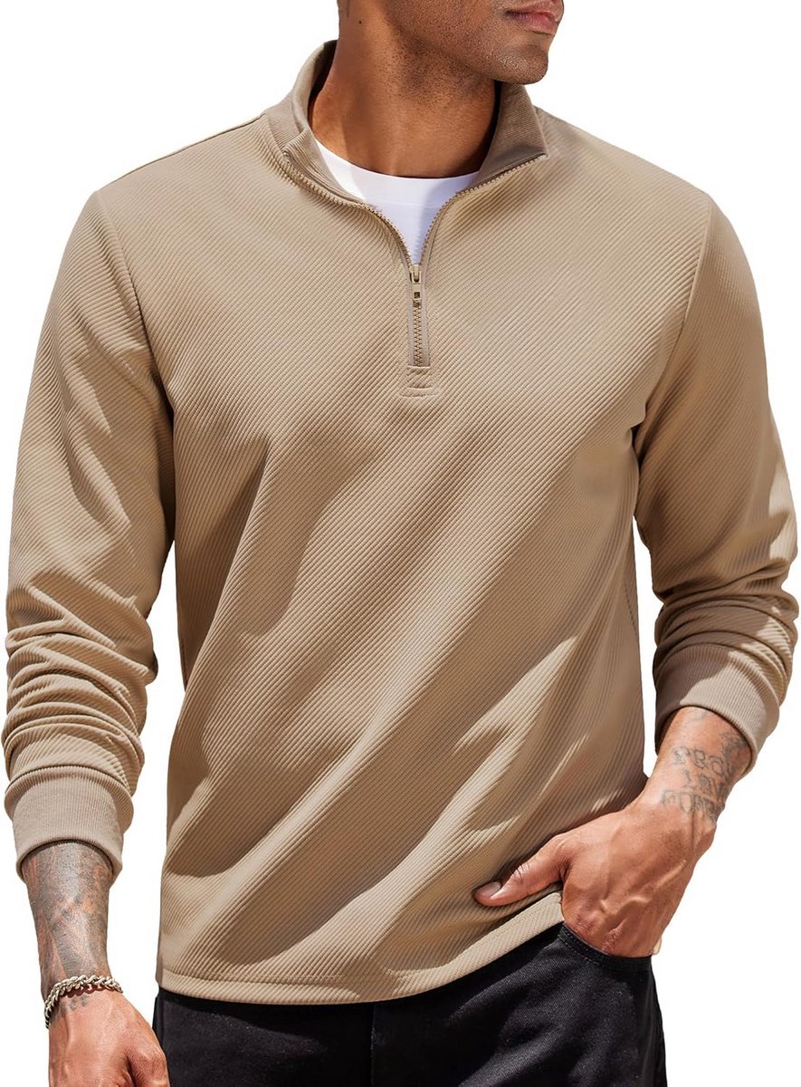 Stijlvolle en comfortabele herentrui met een halfhoge ritssluiting in de kraag. Deze ribgebreide pullover heeft een modieuze slim fit en lange mouwen, ideaal voor lente, herfst en winter. De trui biedt ademend comfort en een elegante, casual uitstraling. Perfect voor zowel zakelijke settings als dagelijks gebruik. Combineer deze trui eenvoudig met een chino of spijkerbroek. Raadpleeg voor de beste pasvorm onze maattabel. Handwas of machinewas met vergelijkbare kleuren in koud water wordt aanbevolen. Beschikbaar in verschillende kleuren en maten (S t/m 3XL).