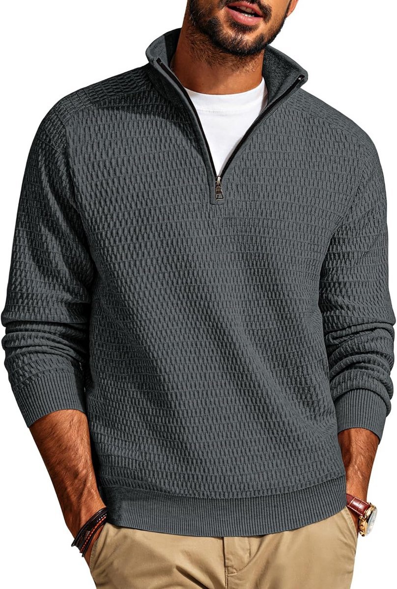 Deze stijlvolle herentrui met 1/4 ritssluiting en opstaande kraag is perfect voor de herfst en winter. Gemaakt van huidvriendelijke stof die niet pluist en hoge elasticiteit biedt, waardoor hij comfortabel aanvoelt tijdens het dragen. Voeg deze must-have toe aan je herfst- en wintergarderobe! Let op: raadpleeg de maattabel voordat je bestelt.