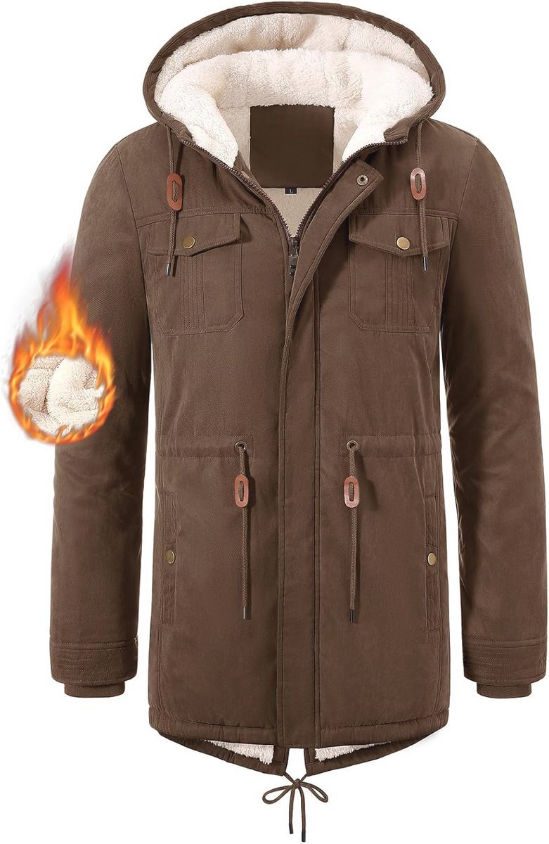 Snowboards kopen » Wintersportkleding » Heren Winter Parka met Fleece Voering en Winddichte Capuchon – Lange Jas met Zakken