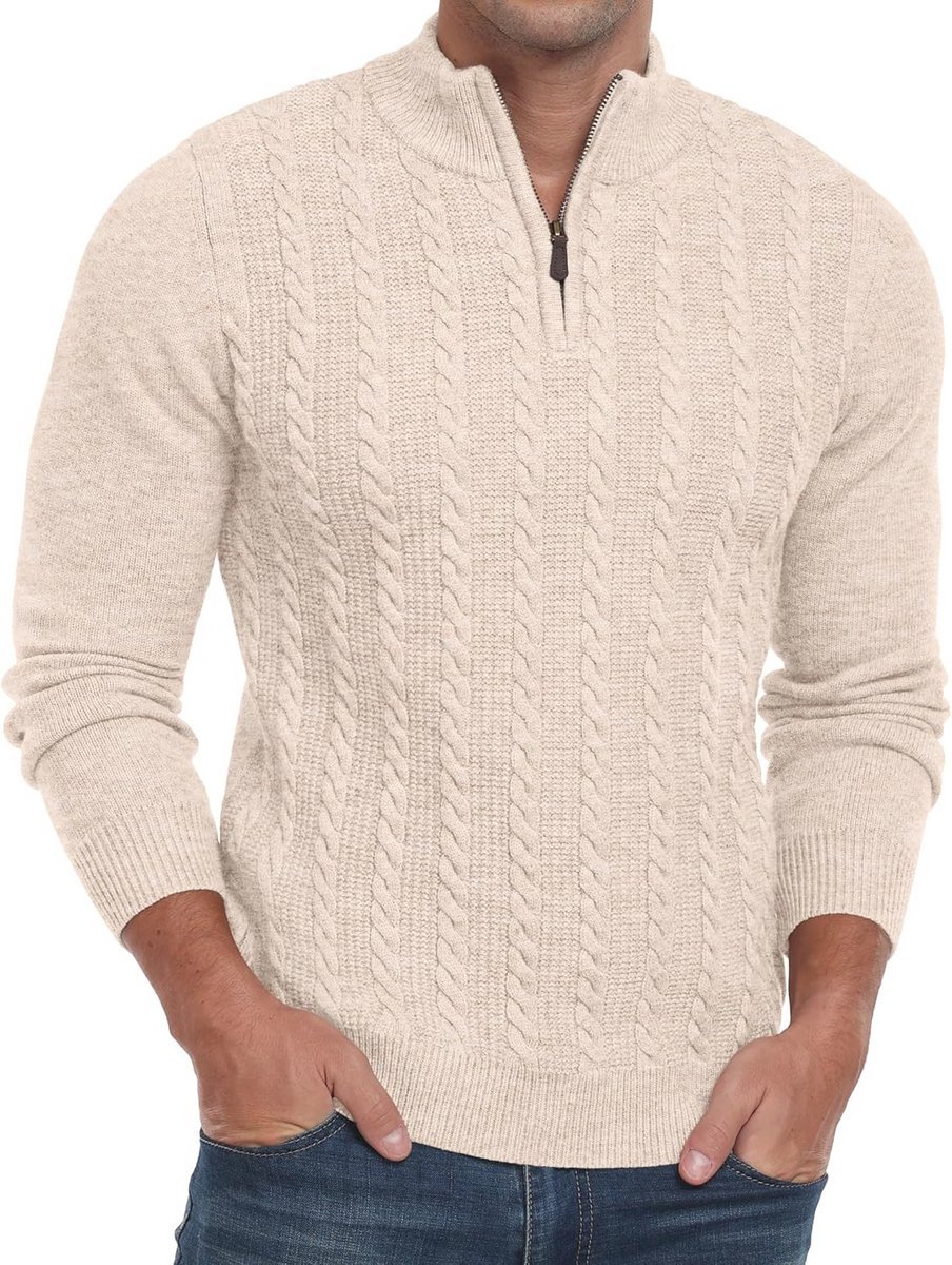 Snowboards kopen » Wintersportkleding » Heren Zip Jumper Kabel Gebreide Ronde Hals Trui voor Winter