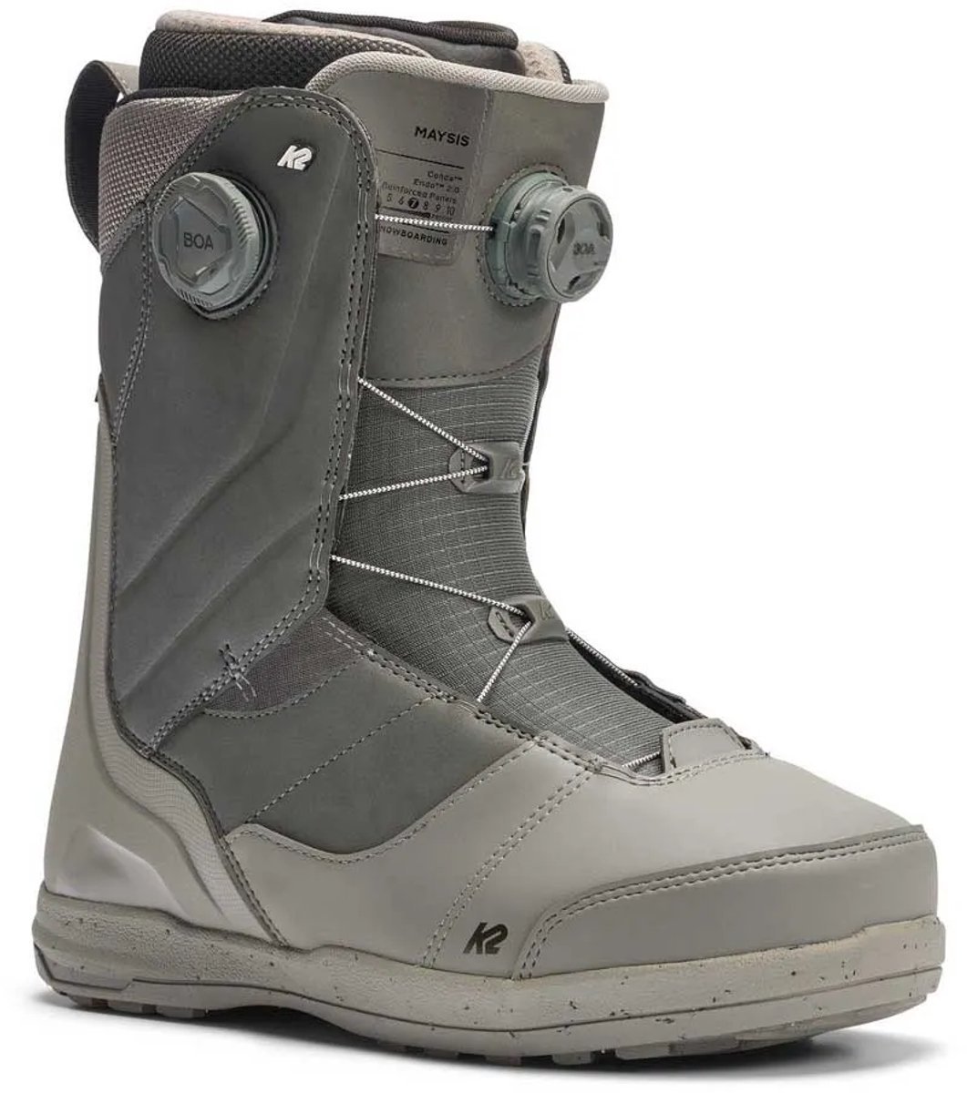Maysis snowboardboots.Kenmerken:- H4 Coiler BOA® Fit System met TX3 Vetersluiting- Rubberen Verstevigde Teen, Articulerende Schacht met HDR Premium Synthetics- Endo 3.0 Hielkap- Intuition® Control Foam 3D Binnenschoen- Interne en Externe J-Bars met Uitgeholde Enkelzakken- S’Cafe™ Koffie Mesh- Conda™ met BOA® Binnenschoen Vetersluiting- Harshmellow™ Plus Binnenzool- This Grips™ Premium Rubberen Buitenzool met Harshmellow™