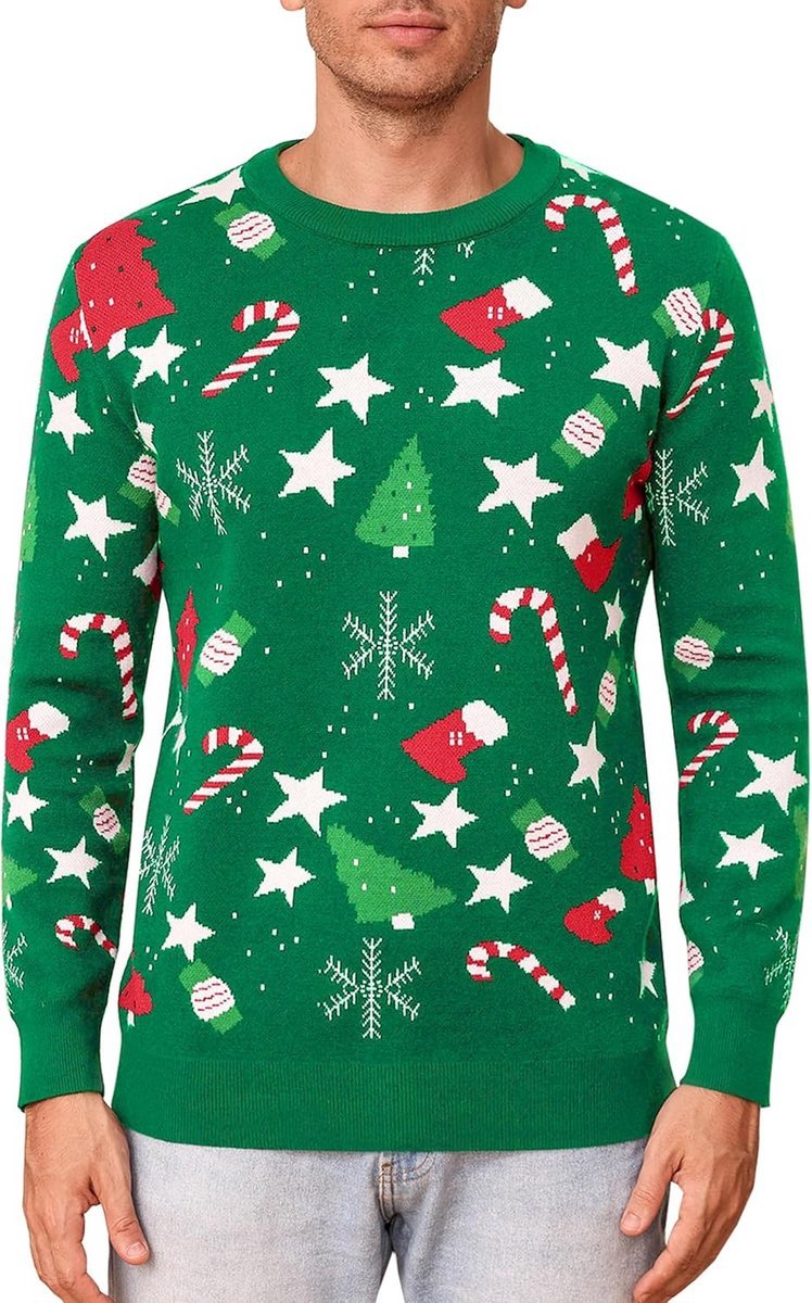 Heren kersttrui met ronde hals en lange mouwen, perfect voor de kerst- en nieuwjaarsperiode. Gemaakt van een comfortabele mix van viscose, polyester en nylon voor een lichte en gladde stof. Verkrijgbaar in de kleuren zwart, rood, blauw en groen en maten S tot XXL. Deze trui heeft een uniek, flatterend ontwerp en is vervaardigd met een geraffineerd naaiproces voor kwaliteitsgevoel. Onderhoud: Stomerij of machinewas op een zacht programma. Niet weken, niet bleken. Strijken op gemiddelde temperatuur aan de binnenkant. Ideaal voor Kerstmis en Nieuwjaar.