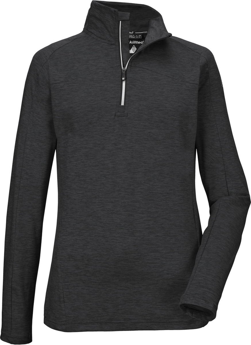 Dames skipully van Killtec. Model: 38601. Kleur: zwart gemeleerd. Heerlijke functionele skipully van Killtec. Gemaakt van 92% polyester en 8% elastaan. Door deze powerstretch heeft deze skipully een zeer comfortabele pasvorm. Functionele pully met korte rits.