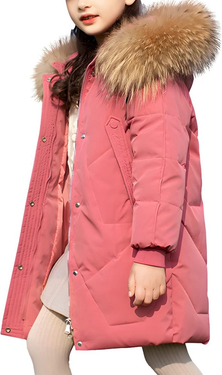 Koop Lange Winterjas Meisjes met Bontkraag – Gewatteerd en Warm voor 5 t/m 13 Jaar Online