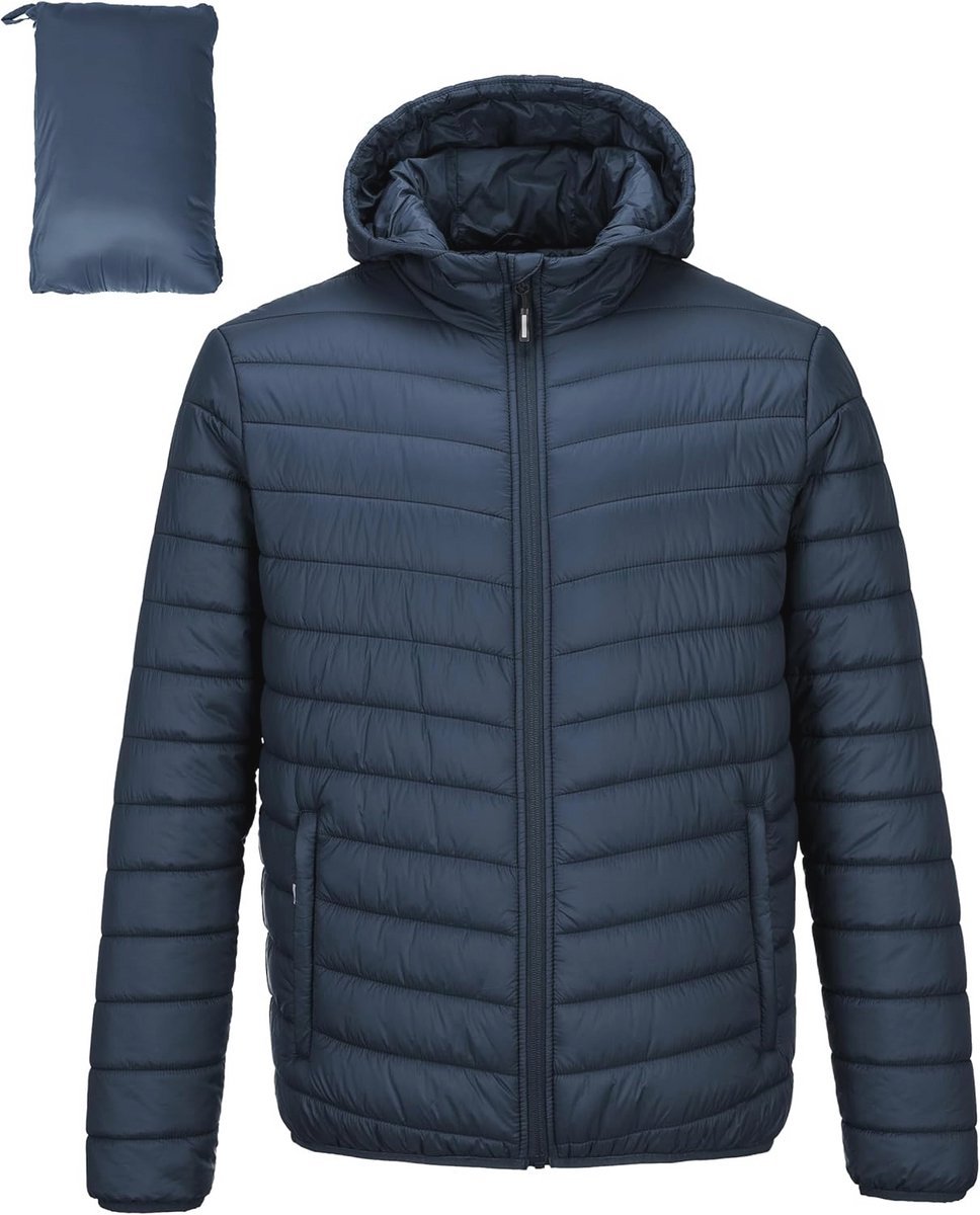 Lichte Gewatteerde Winterjas voor Heren – Waterdichte Opvouwbare Jas met Capuchon en Zakjes