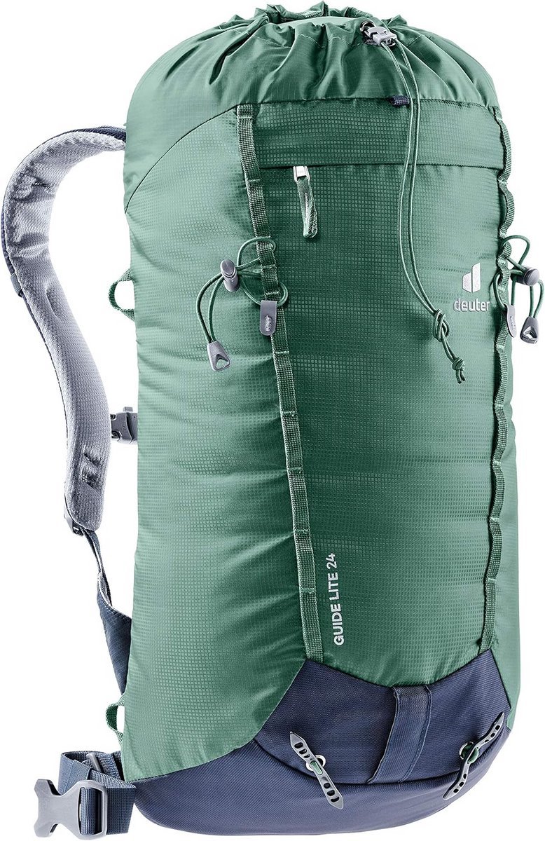 De Deuter Guide Lite 22 SL is een lichtgewicht en robuuste rugzak, ontwikkeld in nauwe samenwerking met bergsportprofessionals. Met een gewicht van slechts 650 gram is deze rugzak uitermate geschikt voor ambitieuze bergbeklimmers die een extreem lichte en puristische rugzak wensen. De rugzak zit stevig en dicht bij het lichaam dankzij de vleugels op de schouderriemen, wat optimale stabiliteit biedt bij klimbewegingen. De afneembare buikriem en het rugzakdeksel kunnen eenvoudig thuis worden gelaten om extra gewicht te besparen. De rugzak beschikt over een puistjeshouder met 3-punts fixatie, een opbergbare regenhoes die ook als helmhouder kan dienen, en een apparaat voor een drinksysteem (compatibel met deuter Streamer 2.0). Het Delrin U-frame zorgt voor een gelijkmatige gewichtsverdeling en een goede belastingsoverdracht. Daarnaast zijn er materialenlussen en een afneembare, opbergbare kabelhouder aanwezig. Het hoofdvak kan snel en eenvoudig met één hand worden geopend via een vetersluiting, en is beschermd tegen regen door een opbergbare afdekking. De rugzak is gemaakt van krachtige materialen met een PFC-vrije vuil- en waterafstotende impregnatie, wat zorgt voor duurzaamheid en milieuvriendelijkheid. Dankzij het Lite-systeem zijn de rugzakken tot in het detail beperkt en bijzonder geschikt voor snelle duursporten en dagtochten.