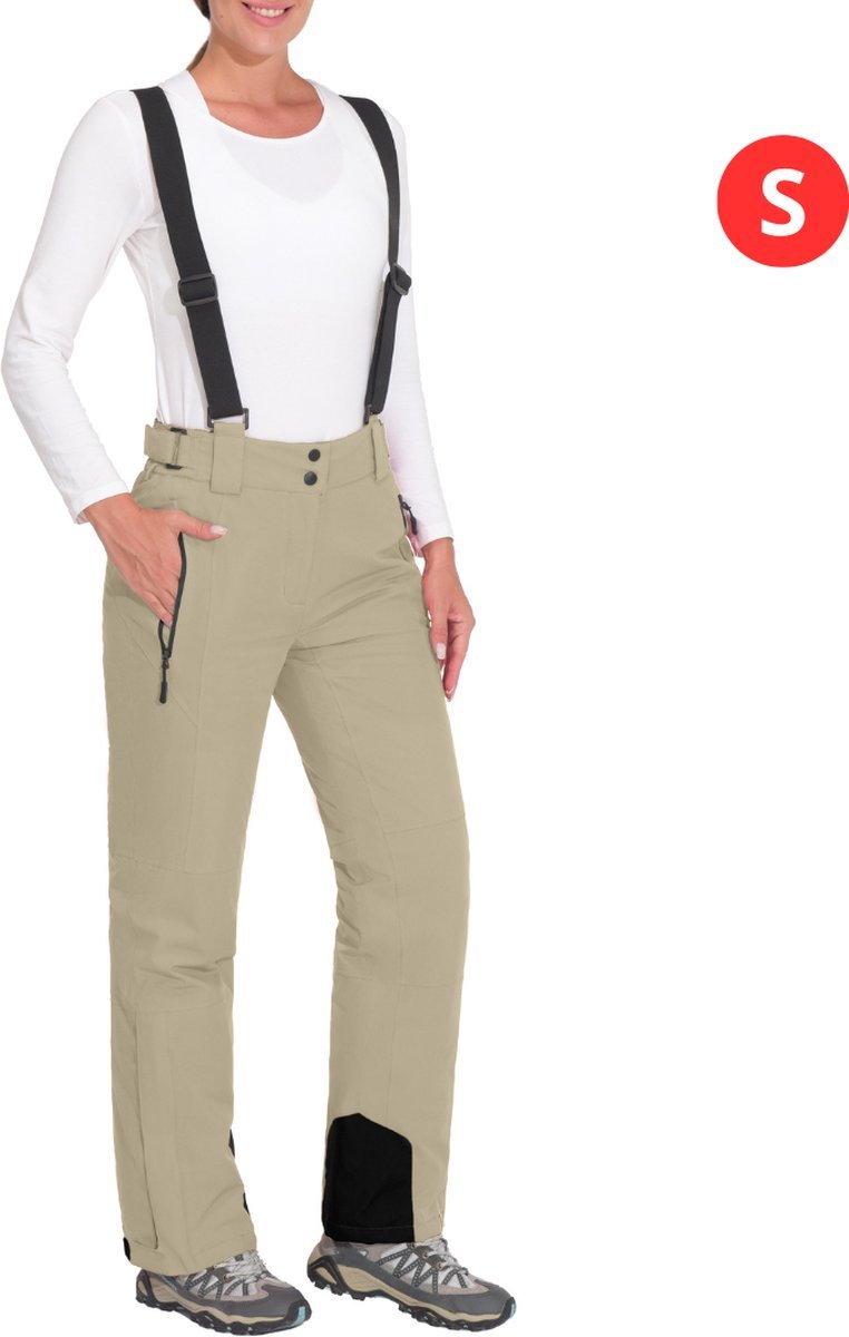 Snowboards kopen » Wintersportkleding » Livano Skibroek – Skipak – Snowboard Broek – Winterbroek – Sneeuwbroek – Dames – Wintersport – Bretels – Khaki – Maat S