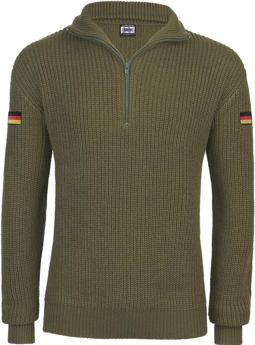 Ontdek onze Marine Troyer met Vlaggen, een herzien model dat perfect is voor zowel werk als vrije tijd. Deze unieke trui is voorzien van klassieke Duitse vlaggen op elke schouder, waardoor hij zich onderscheidt van andere militaire truien. Gemaakt van robuuste, elastisch gebreide stof biedt deze troyer een hoog draagcomfort en houdt je warm tijdens koude dagen dankzij de hoog sluitende kraag met ritssluiting. De gebreide tailleband en mouwen zorgen voor een perfecte pasvorm. Ideaal voor de overgangsperiode, deze wintertrui is een zeldzaamheid op de markt en biedt de kwaliteit die je verwacht. Gemaakt van 100% polyacryl en weegt ongeveer 600 g.
