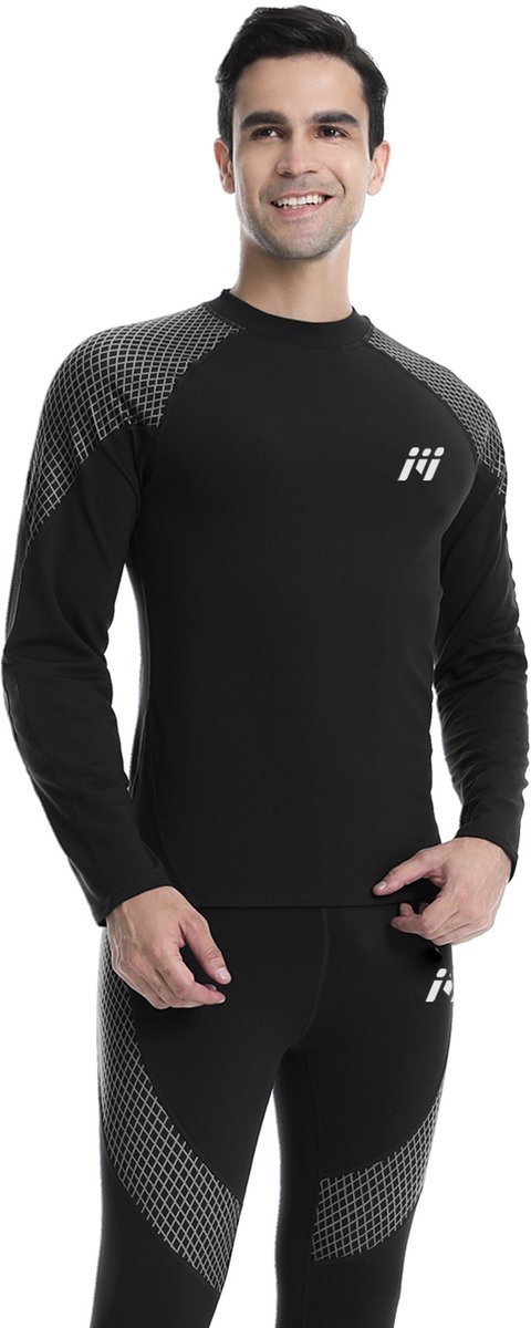 MEETHOO Heren Thermo Ondergoed Set – Thermoshirt & Thermobroek Heat Booster Series – Voor Wandelen, Skiën, Joggen, Fietsen, Motorrijden, Lopen, Klimmen, Trainen, Yoga, Snowboarden, Jagen & Vissen-Zwart-S