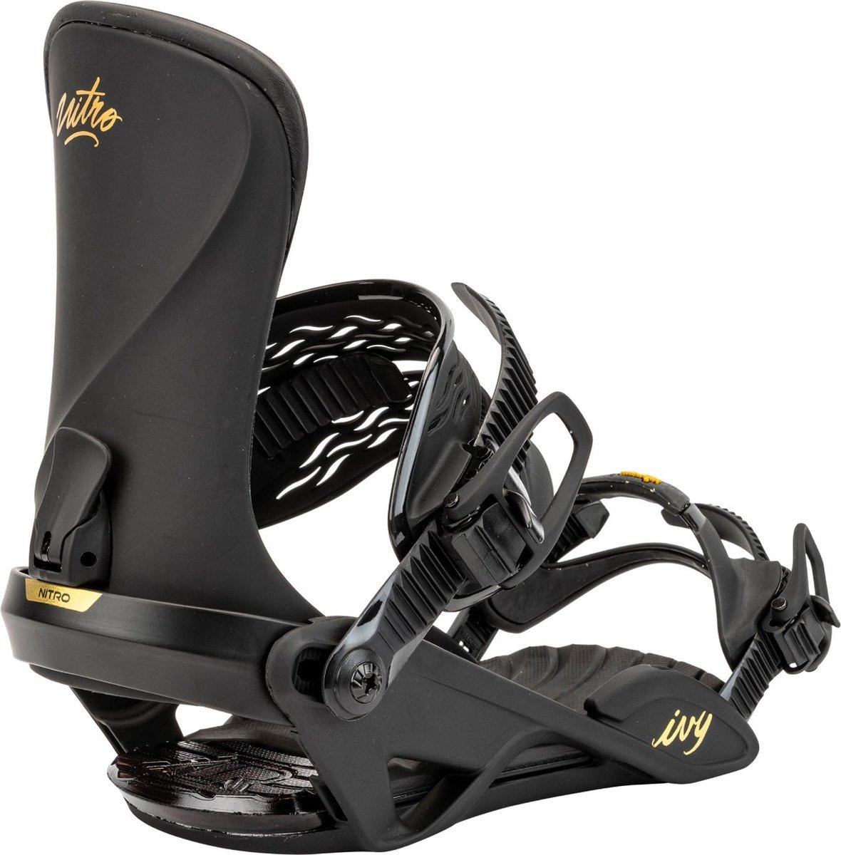 Nitro Ivy Snowboard Binding Zwart Het Stealth Highback-ontwerp is speciaal afgestemd op de vrouwelijke anatomie en biedt de ideale combinatie van ondersteuning en flexibiliteit. Hierdoor ervaar je een nauwkeurige krachtoverdracht en optimale controle over je snowboard. Premium Ankle Strap, De enkelband is ergonomisch ontworpen voor maximaal comfort en een perfecte pasvorm. Je voeten blijven veilig op hun plek, zodat je met vertrouwen kunt sturen en manoeuvreren.