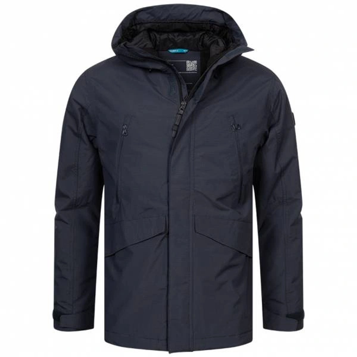 Technische prestaties Deze jas heeft een waterdichtheidswaarde van 10 000 mm en een ademend vermogen van 10 000 g/m²/24 h, wat betekent dat hij goed bestand is tegen sneeuw, regen en vocht terwijl transpiratie effectief wordt afgevoerd. De buitenlaag is behandeld met een waterafstotende coating (DWR) en heeft kritisch getapete naden voor extra bescherming tegen doorlekt water.