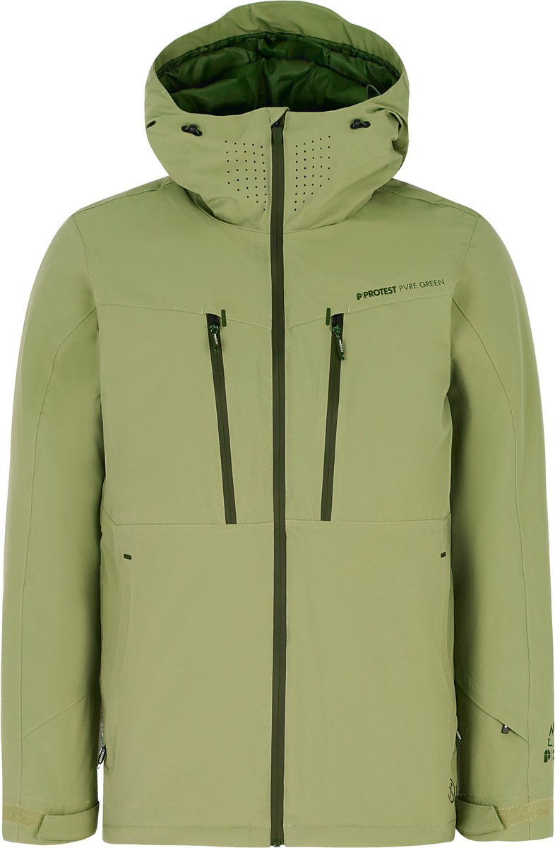 De PRTTIMOTHY ski- en snowboardjas van Protest combineert stijl en functionaliteit met een milieuvriendelijk design. De PRTTIMOTHY maakt deel uit van onze PVRE Green-serie en is gemaakt van gerecyclede materialen en is vrij van schadelijke PFC’s. De PRTTIMOTHY heeft veel handige design kenmerken, zoals de vaste capuchon met hoge kraag die zo ontworpen is dat hij perfect over je helm past, een zak voor de skibril, sneeuwvanger en een liftpashouder. Het 20.000 g ademend vermogen en de 20.000 mm waterafstotende coating voeren transpiratievocht af terwijl je beschermd bent tegen water van buitenaf. Volledig getapete naden, ventilatieritssluitingen bij de oksels en waterdichte ritssluitingen aan de voorkant? Check! De lycra binnenmanchetten met duimlus van de PRTTIMOTHY zijn erg handig voor op de pistes. De lichtgekleurde ritssluitingen en het Protest-logo maken de look helemaal af. De PRTTIMOTHY is verkrijgbaar in een slim fit en lengte.