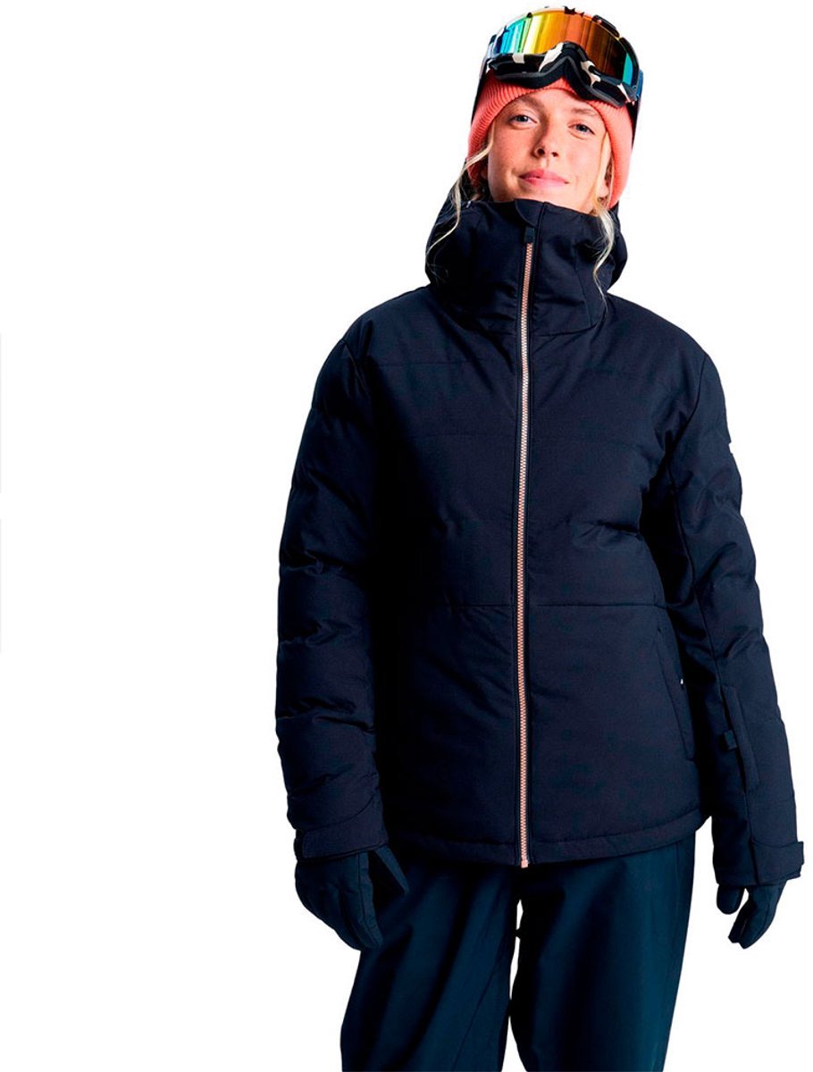 Technische sneeuwjas voor dames.Kenmerken:Technologie: 10K ROXY DryFlight waterdichtheid (10.000mm / 5000g) voor betere waterdichtheid en ademend vermogen.Warmte: ROXY WarmFlight X3 maximale warmte, lichtgewicht, ademende isolatie voor de koudste dagen.Isolatie: 100% gerecycled nep dons (Vulgewicht: 180g).Pasvorm: Getailleerd kort, slankere eigentijdse look met volledige bewegingsvrijheid.Eco Acties: Gemaakt met minstens 70% gerecyclede vezels.PFAS-vrije waterafstotende coating.Buitenstof:Puur gerecycled polyester.Voering: Lichtgewicht taffeta in kaart gebracht met geborsteld tricot voor warmte en ademend vermogen, met bedrukte capuchon.Capuchon: 1-punts, 2-weg verstelsysteem.Sneeuwvanger: Vaste taffeta sneeuwvanger met drukknoopsluiting en jas-aan-broek bevestigingssysteem.Zakken: 2 handwarmerzakken met ritssluiting en sleutelclip, 2 interne mesh zakken, skipaszak op de mouw.Manchetten: Interne stretch polswarmers, verstelbare mouwmanchetten.
