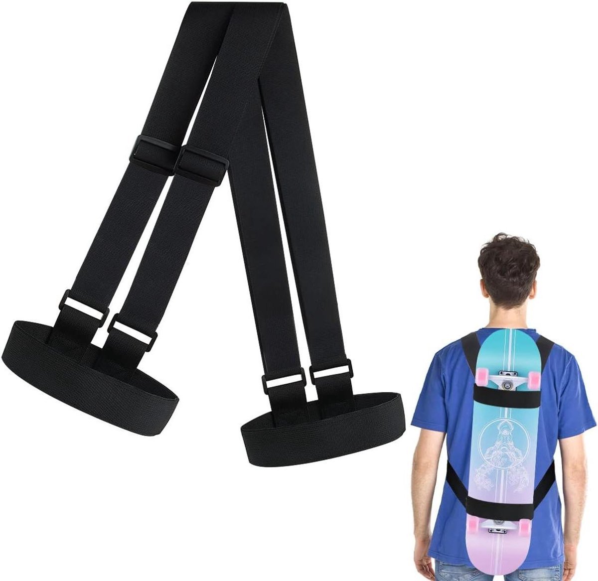 Neem je skateboard of snowboard moeiteloos mee, waar je avontuur je ook brengt. Deze schouderdrager is ontworpen om het transport van je sportuitrusting te vergemakkelijken, zodat je je kunt concentreren op de rit. De universele pasvorm met verstelbare klittenbandsluiting maakt deze drager geschikt voor vrijwel elk skateboard, longboard of snowboard. De verstelbare schouderriem, die je eenvoudig aanpast van 79 tot 138 cm, zorgt voor optimaal draagcomfort, of je nu kiest voor een enkele schouder of beide. Dankzij het compacte en lichte ontwerp rol je de drager eenvoudig op en berg je hem op wanneer hij niet in gebruik is, ideaal voor thuis, onderweg of tijdens het reizen. Gemaakt van hoogwaardig, duurzaam nylon materiaal, is deze schouderdrager bestand tegen vuil en intensief gebruik. De fijne afwerking garandeert een lange levensduur. Maak het jezelf gemakkelijk en geniet van je sport met deze praktische en stevige schouderdrager.