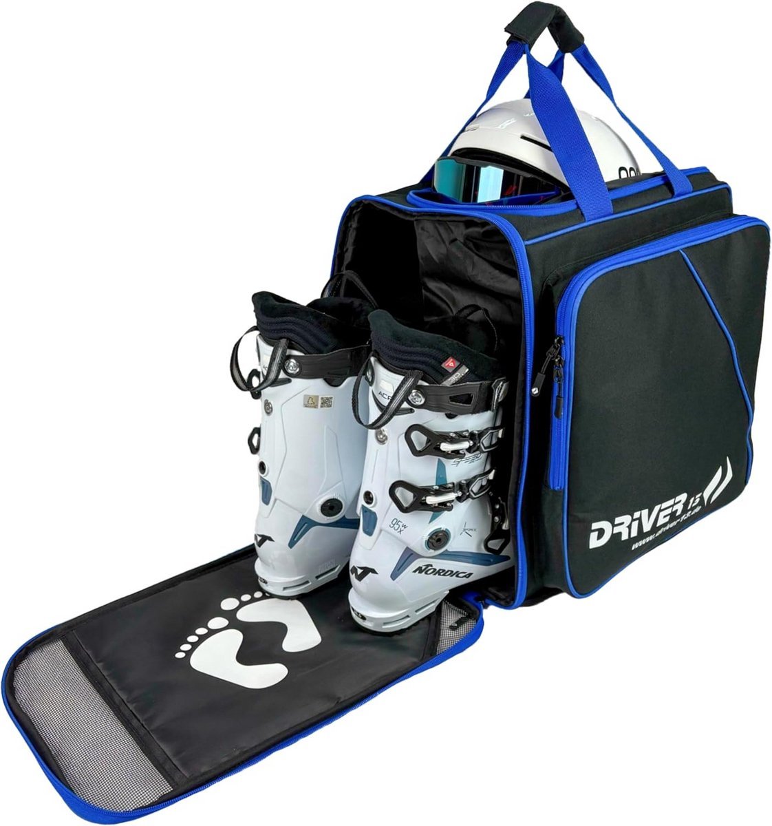 Draag uw ski- en snowboarduitrusting comfortabel met deze rugzak. De tas is speciaal ontworpen met een apart, gemakkelijk toegankelijk helmvak. Daarnaast biedt de tas ruimte voor skischoenen, snowboardboots of inline skates, plus accessoires zoals handschoenen. Ventilatienetten zorgen voor luchtcirculatie en het sneller drogen van uw schoenen. De klep van het schoenencompartiment fungeert als een droge, waterdichte opstapmat, zodat u geen last heeft van sneeuw of vocht tijdens het aan- en uittrekken van uw schoenen. Gemaakt van robuust, dubbel PU-gecoat polyester met een verstevigde bodem. Inclusief diverse extra vakken voor accessoires en vijf gekleurde adreslabels. Ideaal voor skiërs, snowboarders en skaters die functionaliteit en duurzaamheid waarderen.