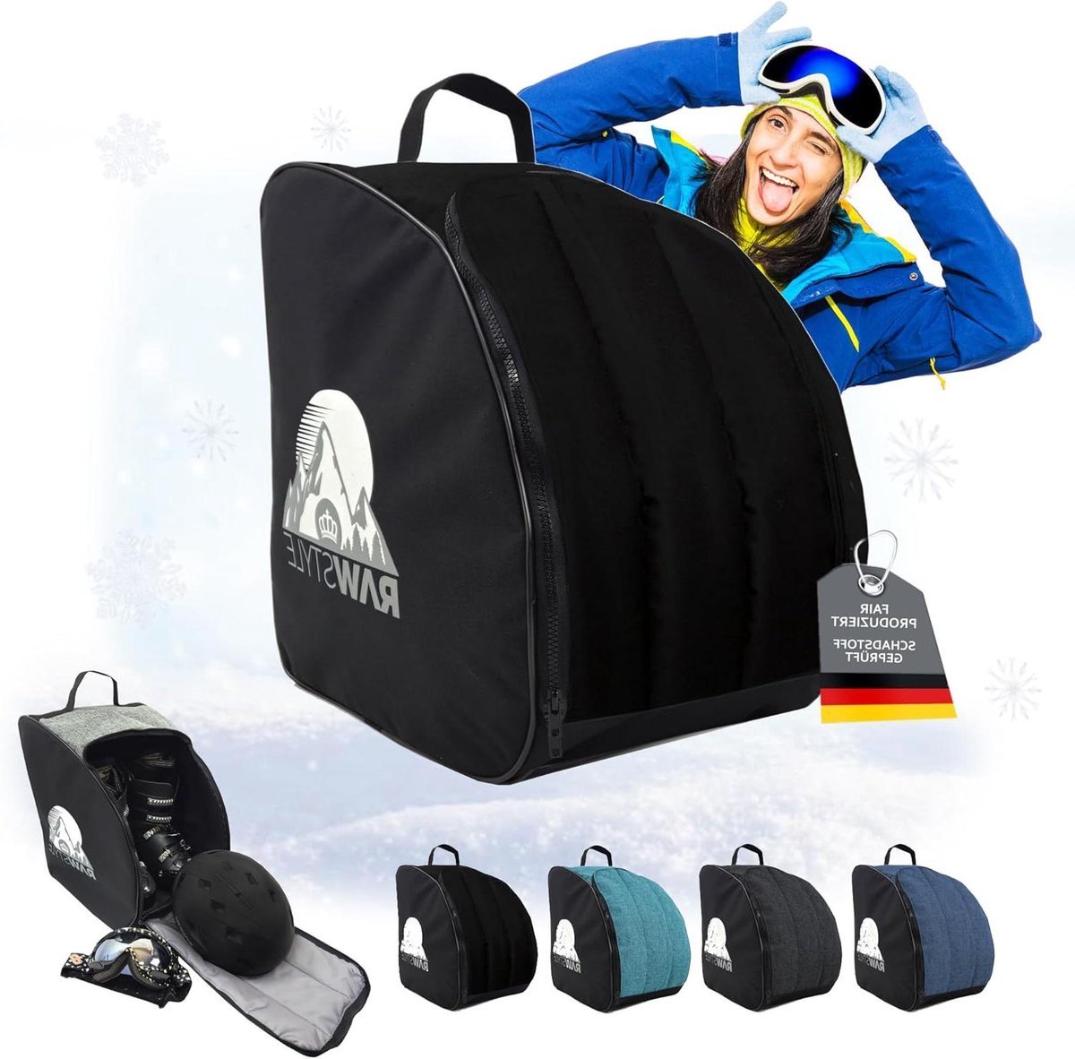 Snowboards kopen » Snowboardrugzakken » Skischoen Rugzak – Skischoentas Bootbag – Wintersport Uitrusting – Waterdicht Cordura Materiaal – 40 x 42 x 30 cm – Zwart