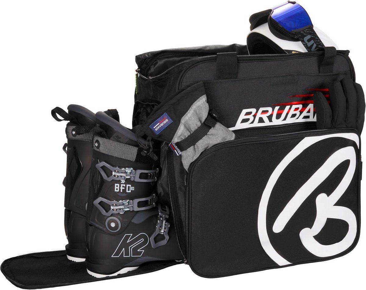 Functionele wintersporttas met een apart, gescheiden vak voor uw skischoenen. De tas is eenvoudig te laden dankzij de ritssluiting aan de zijkant. Aan de voorzijde vindt u een plat vak met klittenband voor snelle toegang tot kleine spullen zoals handschoenen of uw skipas. Met een geïntegreerd, waterafstotend binnenvak (210 T-nylon) houdt u vocht en vuil van uw skischoenen gescheiden van het ruime hoofdvak. Er is voldoende opbergruimte voor uw helm, muts en kleding, die allemaal goed toegankelijk zijn via de rondom lopende tweewegrits. De tas is voorzien van draagriemen met een gedempte handgreep, verstelbare rugzakriemen en een comfortabel rugkussen. De onderkant is gemaakt van vochtbestendig PE-grip materiaal en uitgerust met pootjes om wegglijden te voorkomen. Daarnaast beschikt de buitenkant over een extra voorvak met rits, een zijvak en een adresvak.