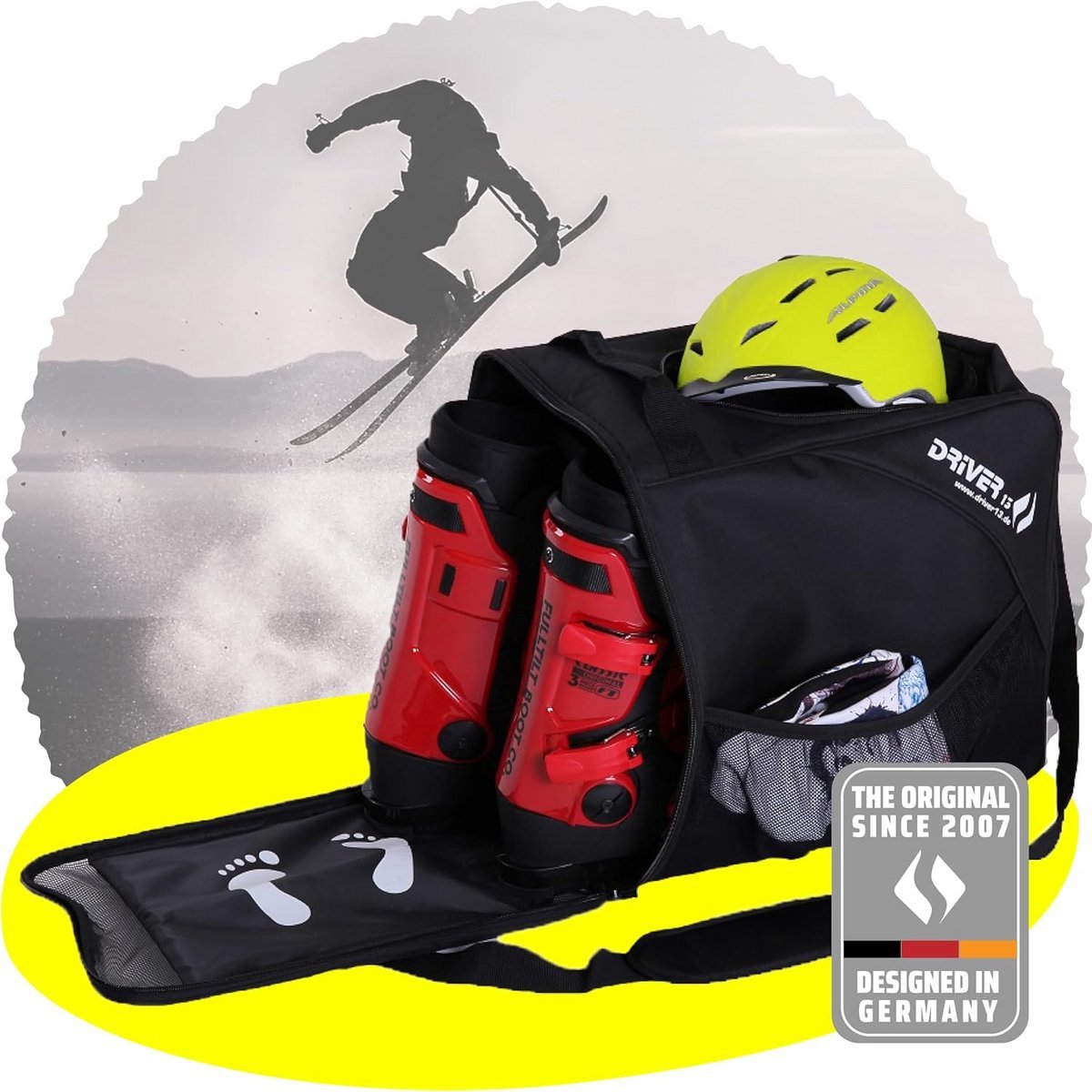 Deze functionele combinatietas is ideaal voor het vervoeren van uw ski- of snowboardlaarzen, helm en accessoires. Dankzij de geïntegreerde draaggreep en schouderriem transporteert u uw uitrusting comfortabel. De tas beschikt over een apart, gemakkelijk toegankelijk vak speciaal voor uw helm en biedt extra ruimte voor handschoenen, skibril en andere kleine benodigdheden in de diverse zijvakken. Ventilatie zorgt ervoor dat vocht uit uw laarzen kan ontsnappen. De klep van het schoenenvak dient tevens als een waterdicht en comfortabel opstapje om met sokken uw schoenen aan of uit te trekken, zonder natte voeten te krijgen. Productspecificaties: – Kleur: Zwart – Materiaal buitenzijde: Dubbel PU-gecoat Polyester – Materiaal binnenzijde: Nylon – Afmetingen: 41 cm (L) x 27 cm (B) x 43 cm (H) – Gewicht: 850 gram – Voorzien van PE versteviging in de bodem, ventilatienetten in de schoen- en helmvakken en vijf adreskaartjes voor eenvoudige identificatie.
