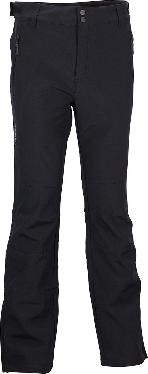 · warme softshell skibroek, PFC-vrij, met verhoogde achterkant voor extra bescherming tegen wind en kou