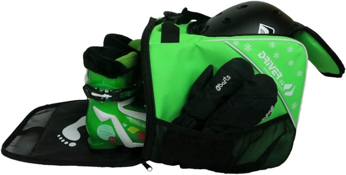 Deze handige combiskischoenentas is ideaal voor kinderen om skischoenen, skates of inlineskates gemakkelijk mee te nemen. De tas beschikt over een apart, direct toegankelijk vak voor een helm en extra opbergruimte voor accessoires zoals handschoenen en brillen. Ventilatieopeningen in de vakken zorgen ervoor dat restvocht kan ontsnappen. De klep van het schoenenvak is ontworpen als een droog voetenmatje, zodat kinderen comfortabel hun schoenen kunnen aan- en uittrekken zonder natte voeten te krijgen van sneeuw of vocht. De tas is gemaakt van robuust, dubbel gecoat polyester en nylon, met PE verstevigde bodemplaten voor extra duurzaamheid. Met draag- en schouderriem voor comfortabel transport. Afmetingen: 31 cm (L) x 26 cm (B) x 33 cm (H). Ideaal voor alle wintersporters.