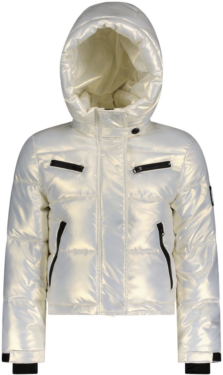 Super Rebel Spicy Girls Metallic Hooded Ski Jacket Winter White