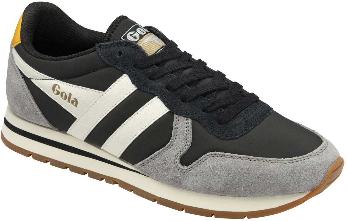 Deze combinatie van ouderwets nylon met een stedelijke kleurenpalet maakt dit nieuwe model Daytona Chute een echte aanvulling. Deze vintage jogger silhoeette van trendy parachutnylon is herontworpen vanuit de catalogus van Gola. Met het iconische merk Gola, zijn EVA tussenzool en zijn geribbelde buitenzool, blijft dit model dagelijkse schoenen voor mannen, aangeboden in zwart, cementgrijs en gebroken wit, een gemakkelijke keuze.
