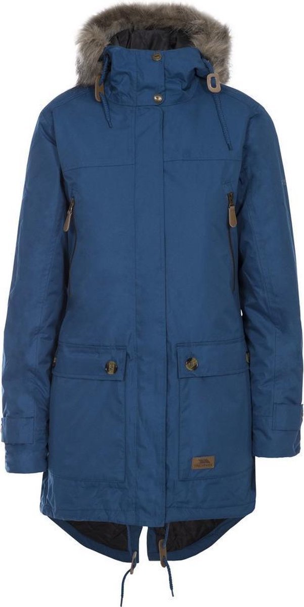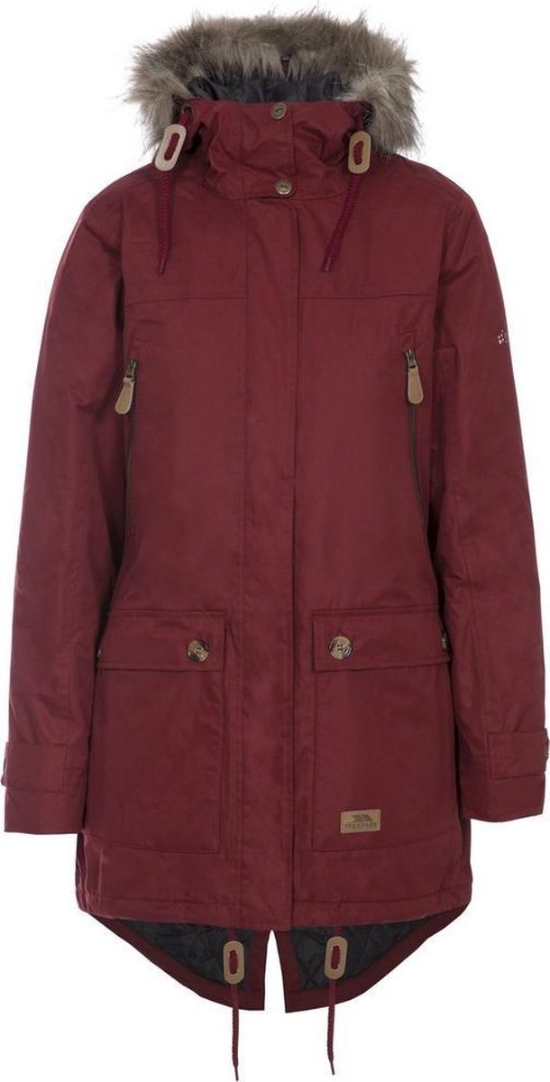 Gewatteerde dames jas Vaste verstelbaar capuchon met getrimd afneembaar nepbont 2 zakken met rits 2 opgestikte zakken Verstelbare trekkoord in zoom Knoop manchet versteller Kin bescherming Waterbestendig 5000mm Winddicht Getapete naden Materiaal samenstelling: Buitenkant- 100% polyester PU-laag, Voering- 100% Polyester Borstomvang Trespass Dames (ca.): XS / 81 cm, S / 86 cm, M / 91,4 cm, L / 96,5 cm, XL / 101,5 cm , XXL / 106,5 cm.