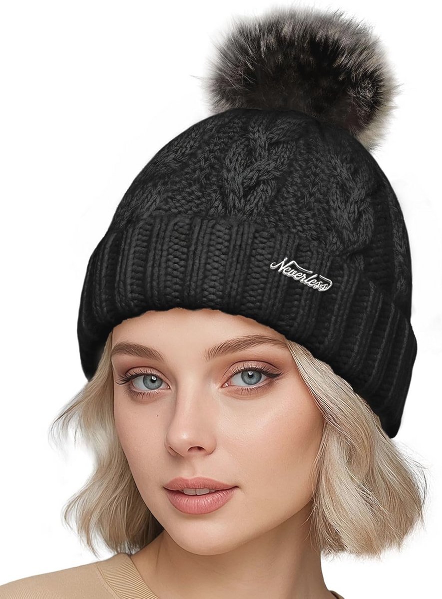 Voordelige gebreide muts voor dames met pompon en fleece voering – winteraccessoire