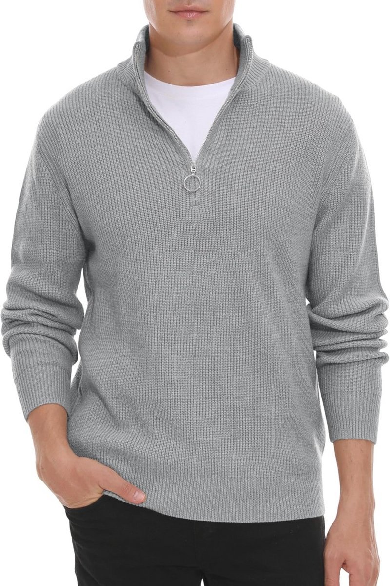 Deze warme gebreide wintertrui voor heren is perfect voor het koude seizoen. Gemaakt van hoogwaardige, huidvriendelijke stoffen biedt de trui superieur comfort en duurzaamheid. Met een stijlvolle kwartritssluiting en een elegante polohals is deze trui ideaal voor zowel casual als formele gelegenheden. De comfortabele pasvorm en lange mouwen zorgen ervoor dat je het warm hebt, terwijl de zachte stof niet irriteert op de huid. Verkrijgbaar in meerdere maten, waardoor er voor elke man een perfecte pasvorm is. Geniet van de combinatie van stijl en functionaliteit met deze must-have wintertrui.