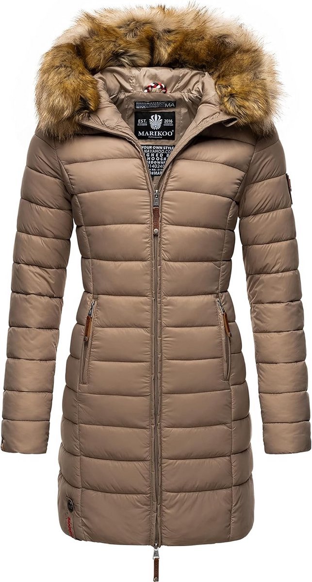 Warme gewatteerde lange winterjas dames met afneembare capuchon en imitatiebont