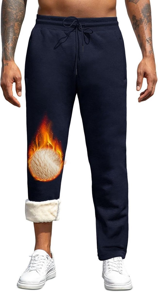 Snowboards kopen » Wintersportkleding » Warme Trainingsbroek Heren Fleece Winter Sportbroek Jogger Katoen met Trekkoord en Ritszakken