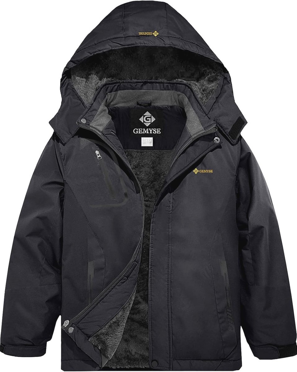 Snowboards kopen » Wintersportkleding » Waterdicht en Winddicht Ski-Jack voor Jongens met Fleece Voering en Afneembare Capuchon
