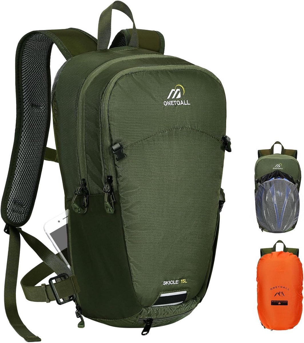 Snowboards kopen » Snowboardrugzakken » Waterdichte Fietsrugzak 15L: Wandel- en Skirugzak met Helmnet en Regenhoes