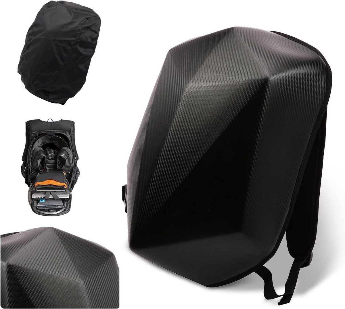 Grote waterdichte rugzak van 30 liter met een harde schaal en koolstofvezel-look, ideaal voor motorrijden, fietsen en diverse outdooractiviteiten. Deze rugzak biedt een grote capaciteit voor al uw spullen en is ontworpen voor duurzaamheid en bescherming tegen de elementen.