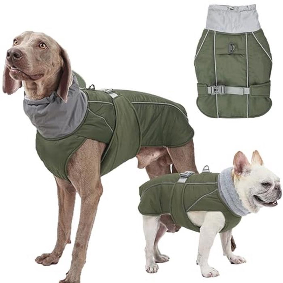 Waterdichte hondenjas met rolkraag en reflectoren voor alle hondenmaat