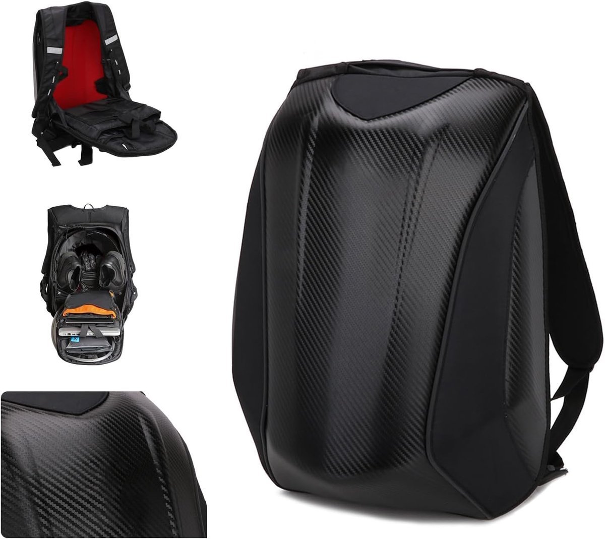 Een robuuste en stijlvolle rugzak voor motorliefhebbers die op zoek zijn naar functionaliteit en bescherming. Deze rugzak is vervaardigd van hoogwaardige harde schaal in een carbonlook, wat zorgt voor duurzaamheid en een sportief design. De rugzak is volledig waterdicht en beschermt uw spullen tegen regen en vocht. Met een inhoud van 30 liter biedt deze tas ruime opbergruimte voor al uw benodigdheden tijdens reizen, kampeertripjes of dagelijkse verplaatsingen. De rugzak is uitgerust met verstevigde handvatten en veiligheidsriemen voor een comfortabele en veilige fit. Ideaal voor zowel motorrijden als fietsen, deze rugzak is de perfecte combinatie van praktisch gebruik en strak design.