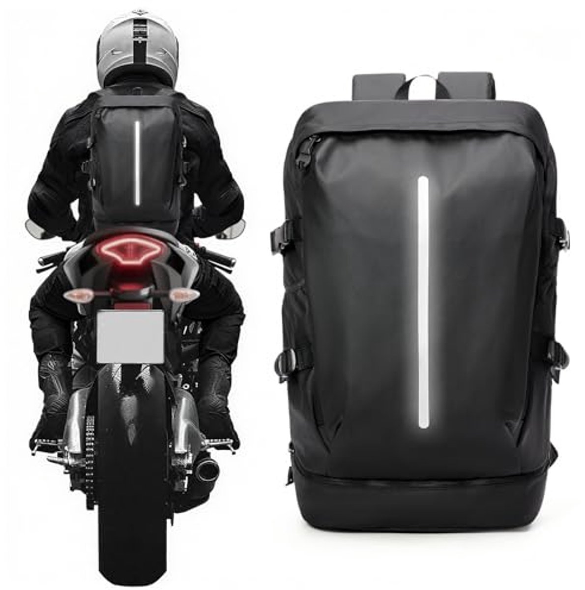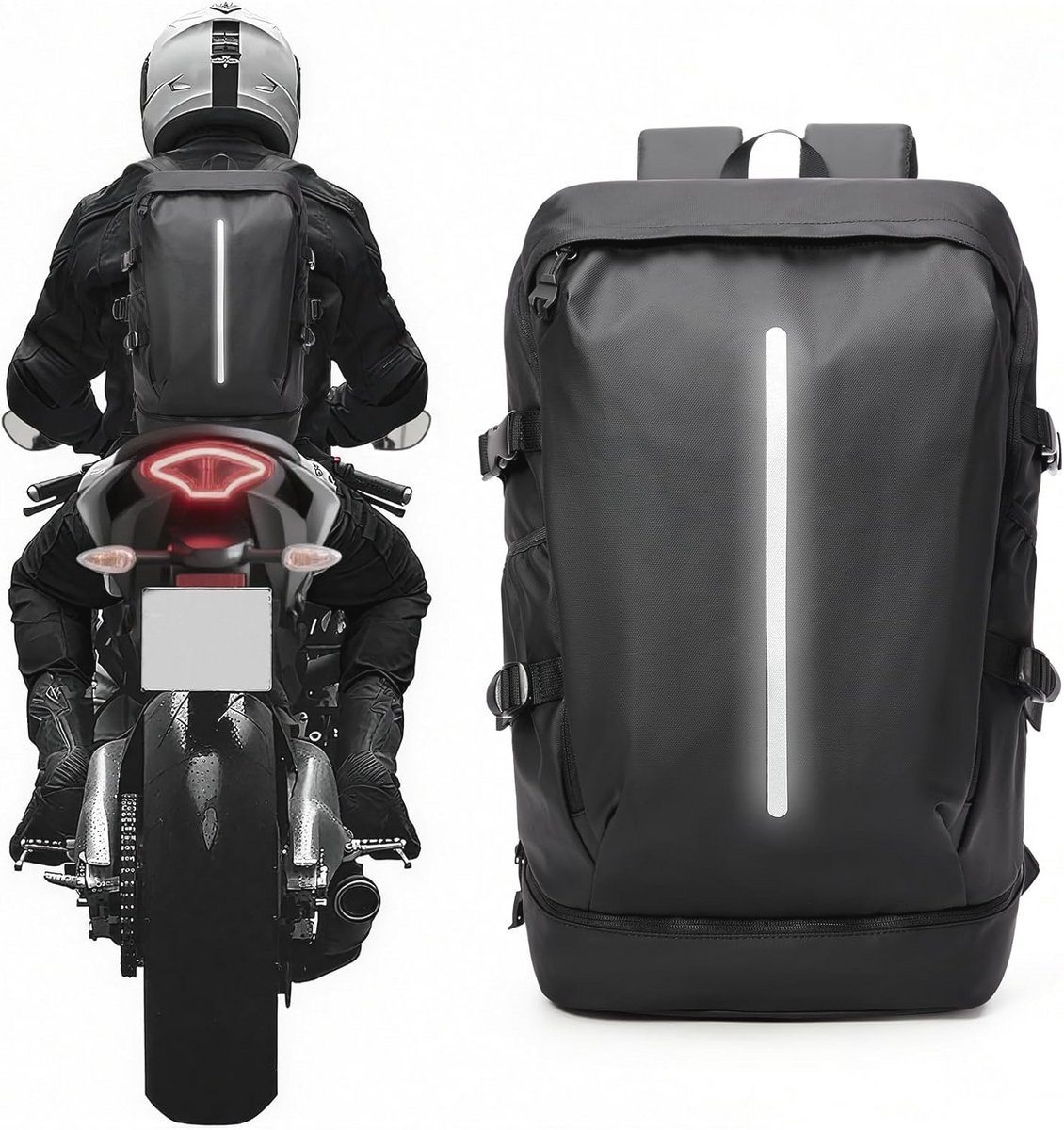 Deze waterdichte motorrugzak is ideaal voor zowel dames als heren. Met een ruim interieur en een speciaal vak voor schoenen biedt deze grote reisrugzak voldoende opbergruimte voor al je benodigdheden. Het lichte ontwerp maakt het gemakkelijk om de rugzak mee te nemen op al je avonturen.