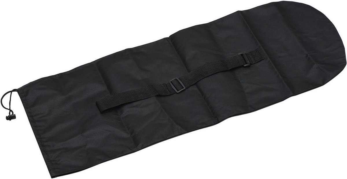 Bescherm uw skateboard tijdens transport met deze stevige en draagbare skateboard tas. Deze zwarte draaghoes is gemaakt van duurzaam, waterdicht 600D Oxford-materiaal en is geschikt voor de meeste skateboards tot 88 x 32 cm. Dankzij het rugzakontwerp met een verstelbare enkele schouderriem kunt u uw handen vrijhouden, ideaal voor woon-werkverkeer of reizen. De tas is lichtgewicht, scheurbestendig en gemakkelijk in gebruik dankzij de snelle sluiting. Is de tas even niet nodig? U vouwt hem eenvoudig op om hem op te bergen. Handig voor het vervoeren en beschermen van uw skateboard tegen krassen en weersinvloeden.